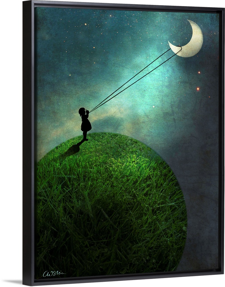<p>A vertical digital composite of a small child roping the moon.</p>