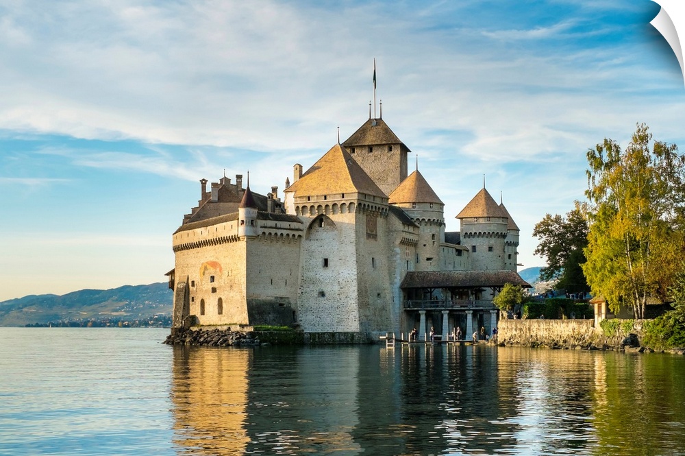 <p>Chateau de Chillon on the shores of Lake Geneva (French: Lac Leman), Veytaux, Vaud Canton, Switzerland.</p>