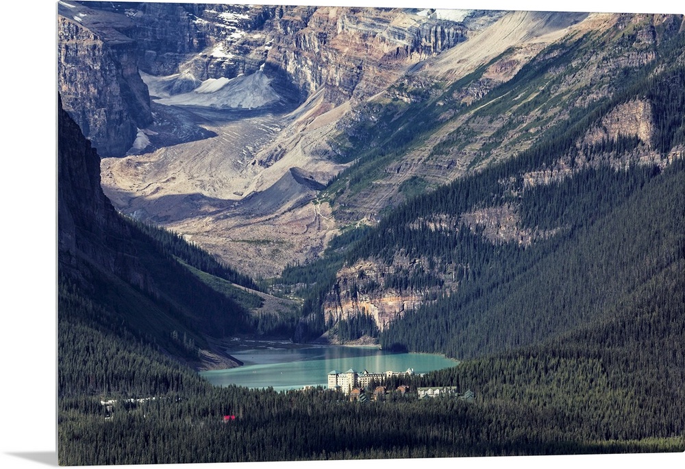 <p>High Angle View of the Chateau Lake Louise, Banff National Park, Alberta, Canada.</p>