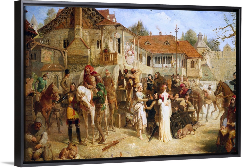 <p>A scene from The Canterbury Tales by Geoffrey Chaucer depicts travelers at the Tabard Inn in Southwark, London.</p>