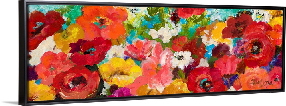 <p>Contemporary panoramic painting of colorful flowers.</p>