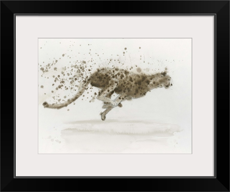 <p>Contemporary artwork of a cheetah running with spots from coat coming off.</p>