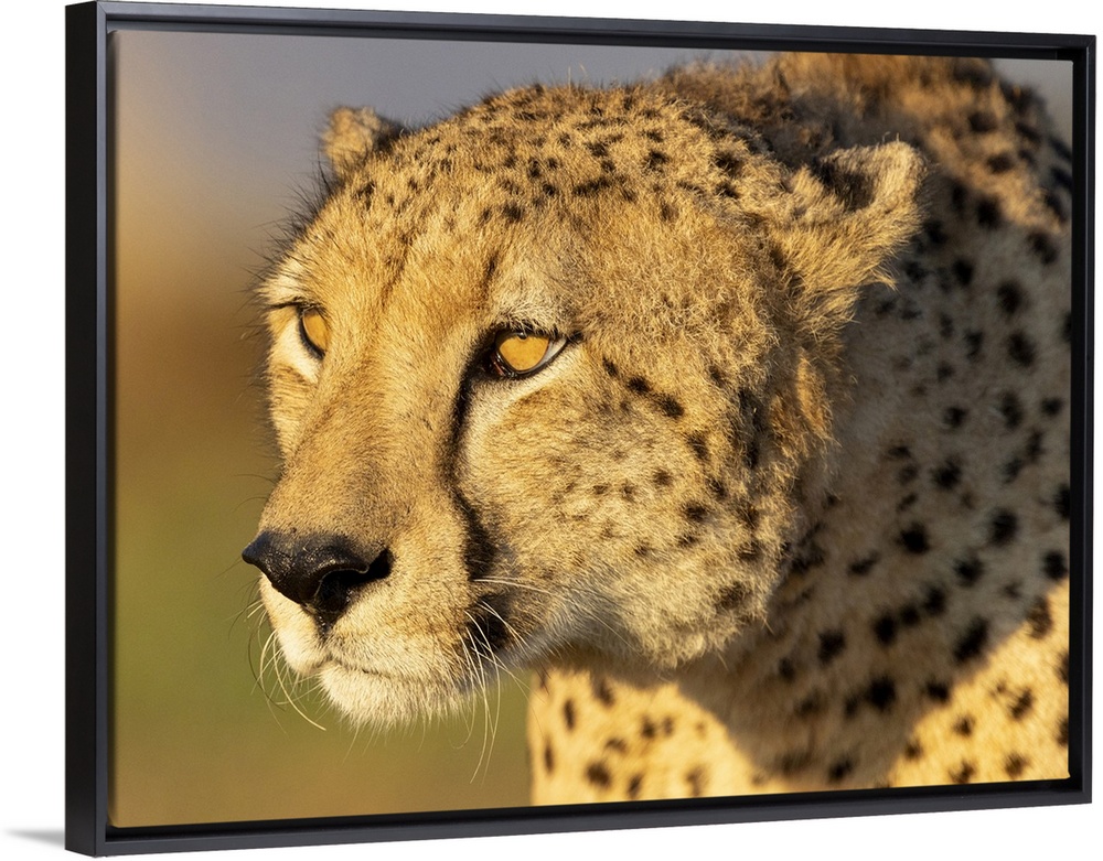 <p>Cheetah bathed in early morning sunlight, Zimanga Private Game Reserve, KwaZulu Natal, South Africa.</p>