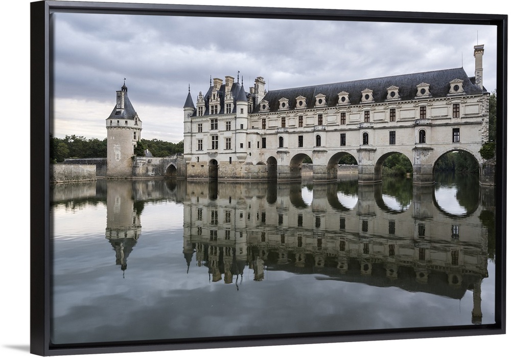<p>Chenonceau castle reflected in the Loire, Chenonceaux, Indre-et-Loire, Centre, France</p>