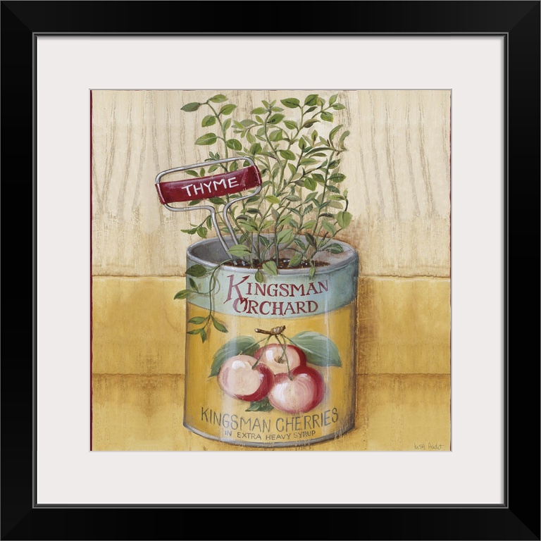 <p>thyme plant growing in Kingsman Orchard Cherries tin</p>