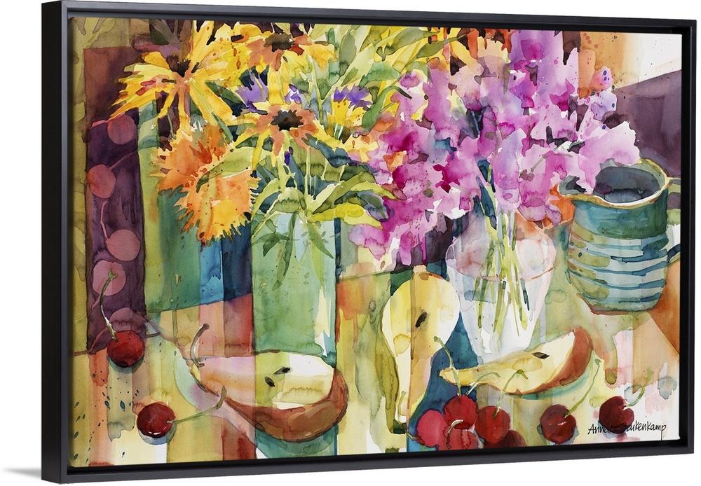 <p>Contemporary watercolor painting of a flower still-life.</p>