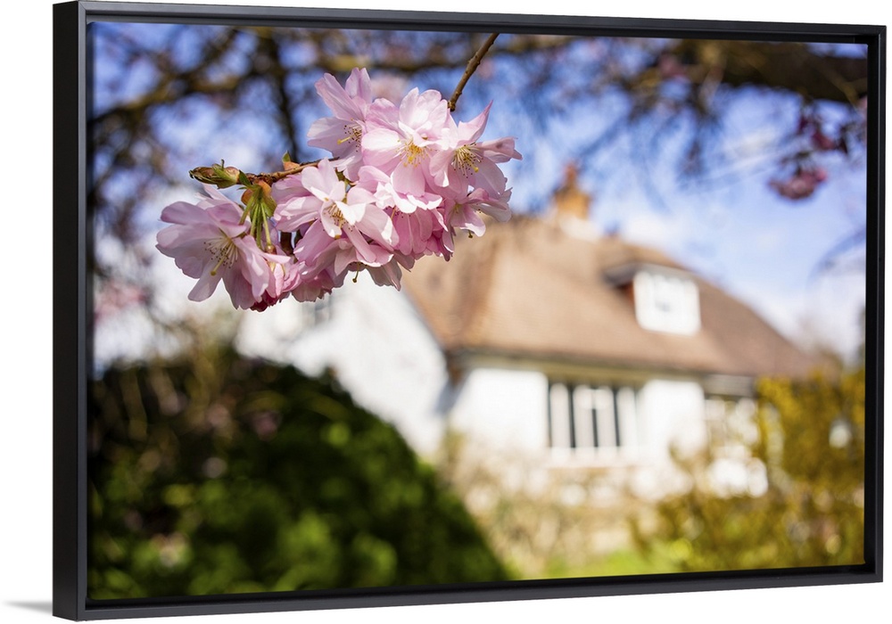 <p>Pink cherry blossom in a garden in the south of England.</p>