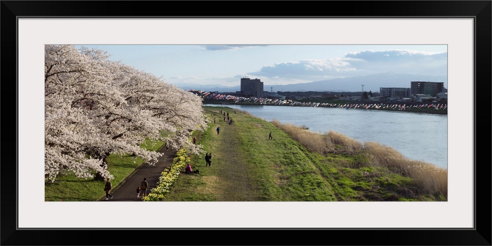 <p>Cherry trees along bank of Kitakami River, Kitakami, Iwate Prefecture, Japan</p>