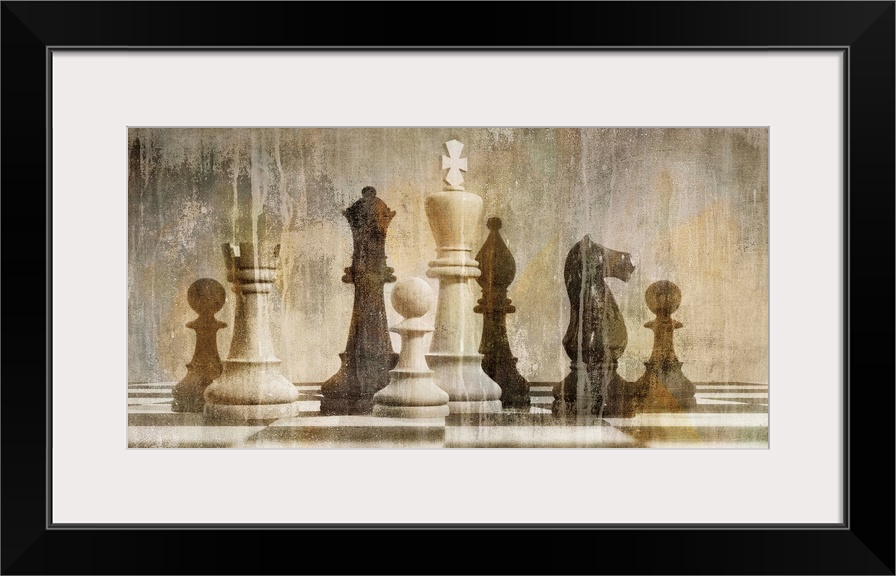 <p>Antique aged decor of a chess board and pieces in sepia and black and white tones.</p>
