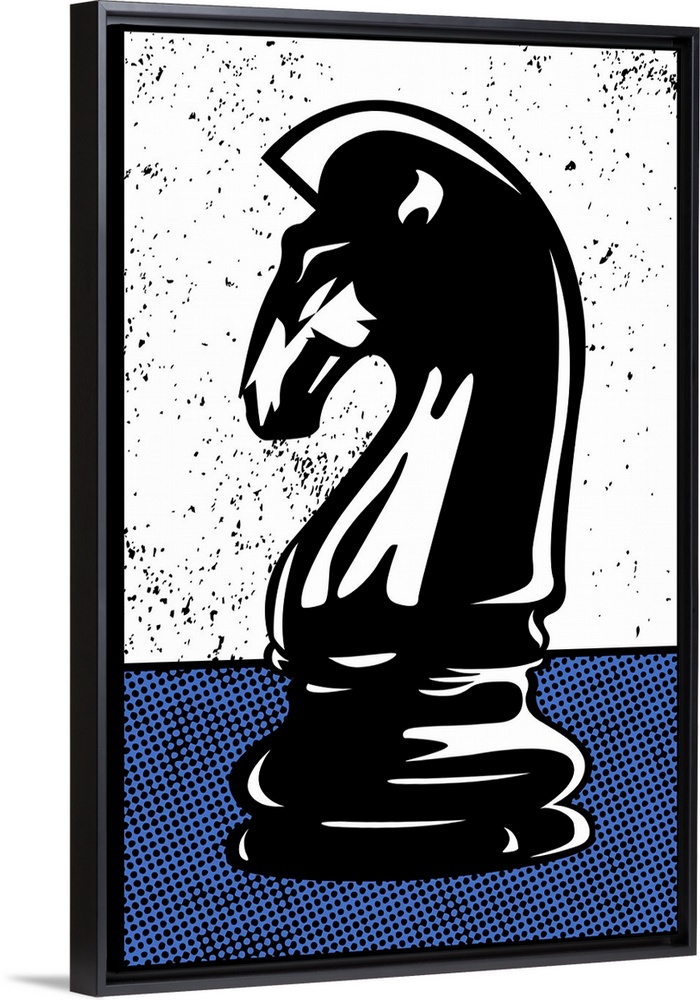<p>Digital illustration of a chess knight in black, white, and blue.</p>