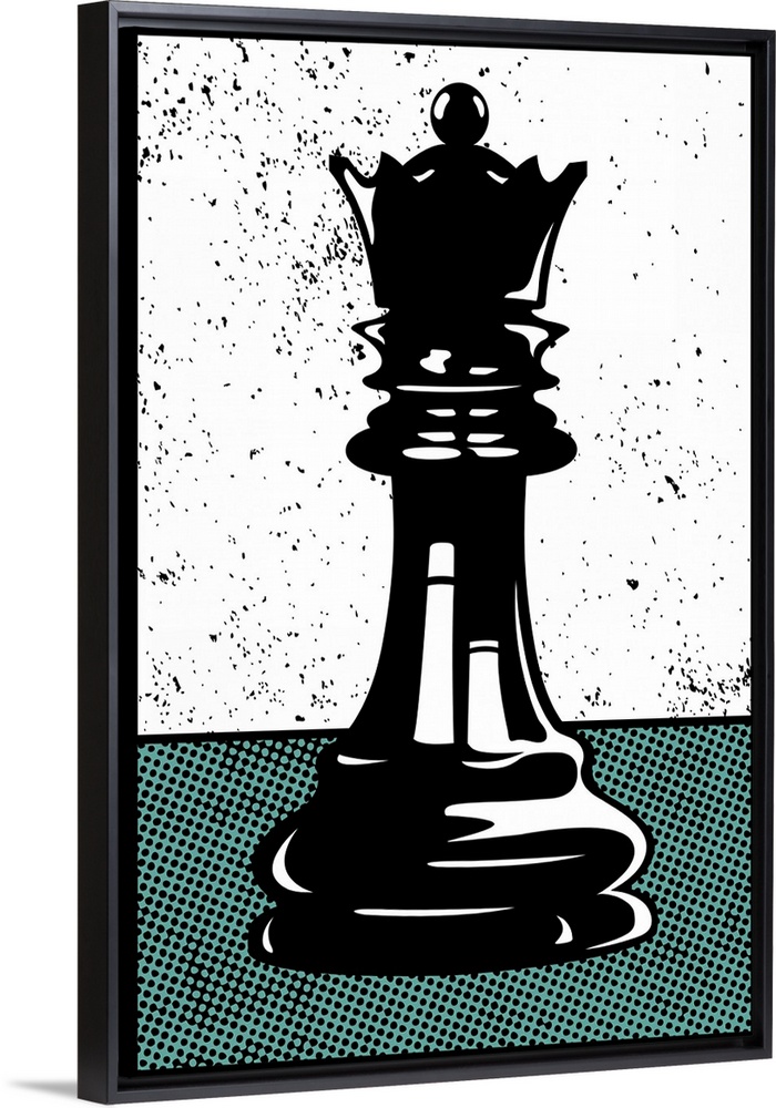 <p>Digital illustration of a chess queen in black, white, and teal.</p>