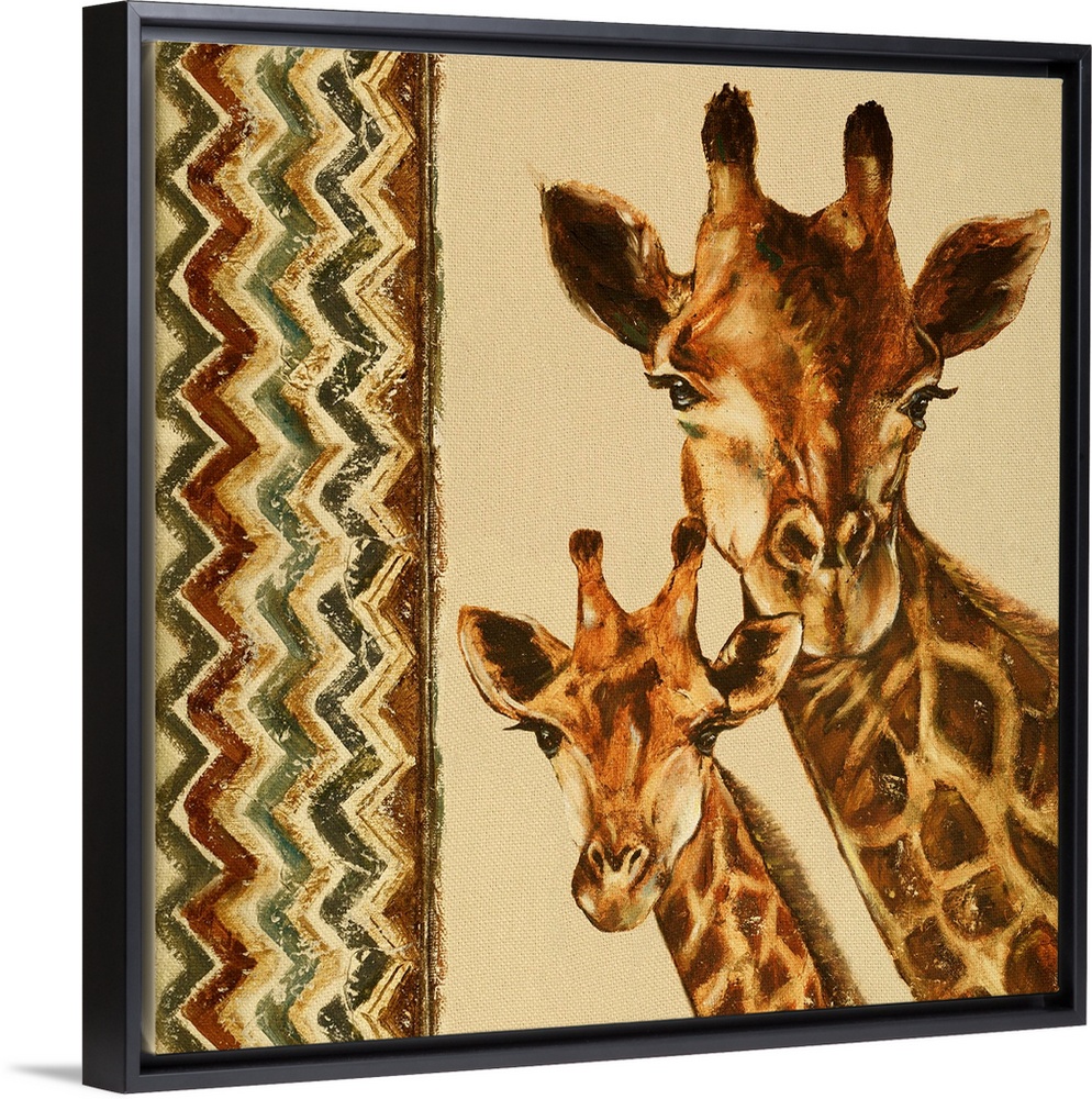 <p>A mother and baby giraffe with a chevron pattern.</p>