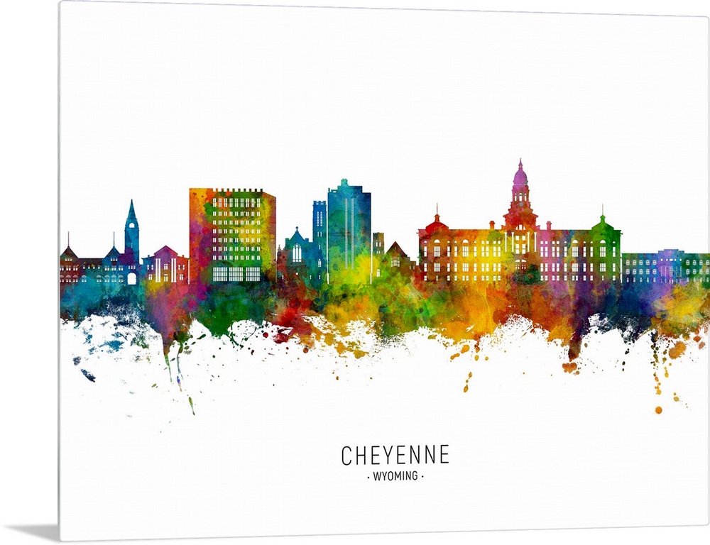 <p>Watercolor art print of the skyline of Cheyenne, Wyoming, United States</p>