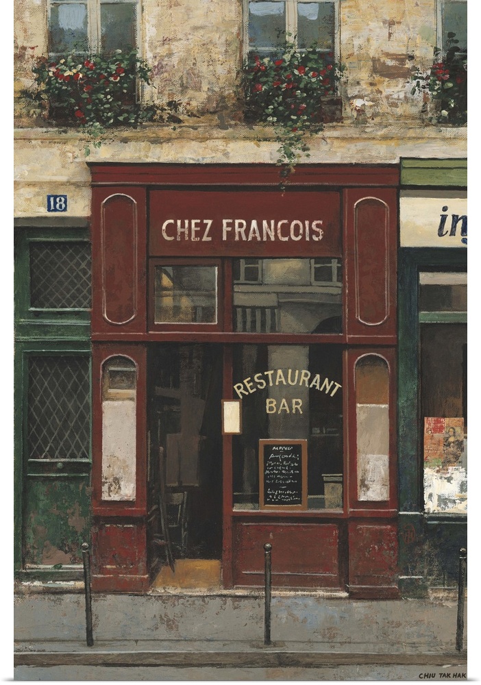 <p>Chiu Tak Hak is a self-taught artist from China who moved to Paris in 1972 and was attracted to the city’s historic shops and cafes. His style combines realism and elements of impressionism and abstractionism. He builds around a realistic central image, and then adds collage and other elements to add depth.</p>