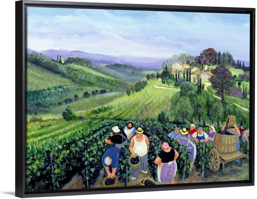 <p>Contemporary painting of farmers in a vineyard in Tuscany.</p>