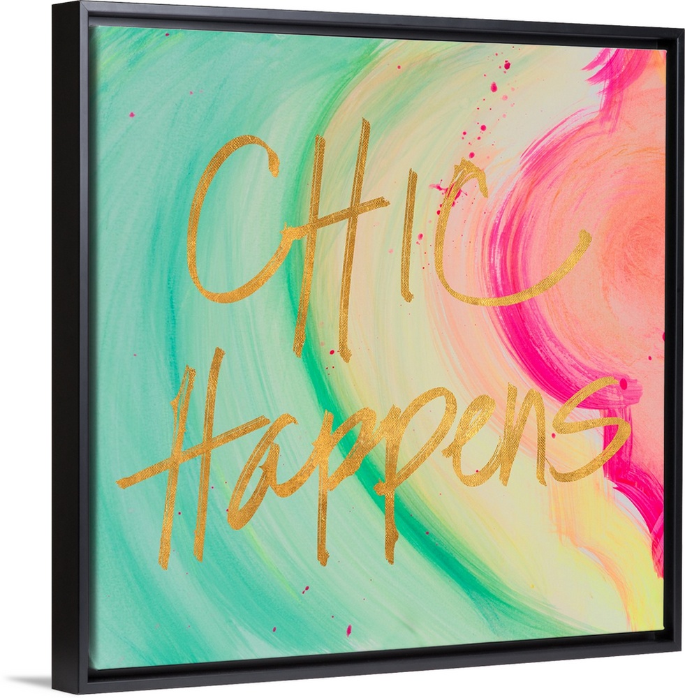 <p>Golden handlettered text over a painted background in green, yellow and pink.</p>