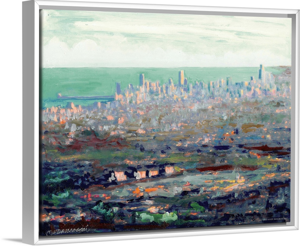 <p>Chicago Blue Dusk By RD Riccoboni, Abstract Painting 2007. Inspired by the view as the sun set to the west and the light reflected off the skyline to the east of the urban metropolis from a flight into the windy city while traveling across country.</p>