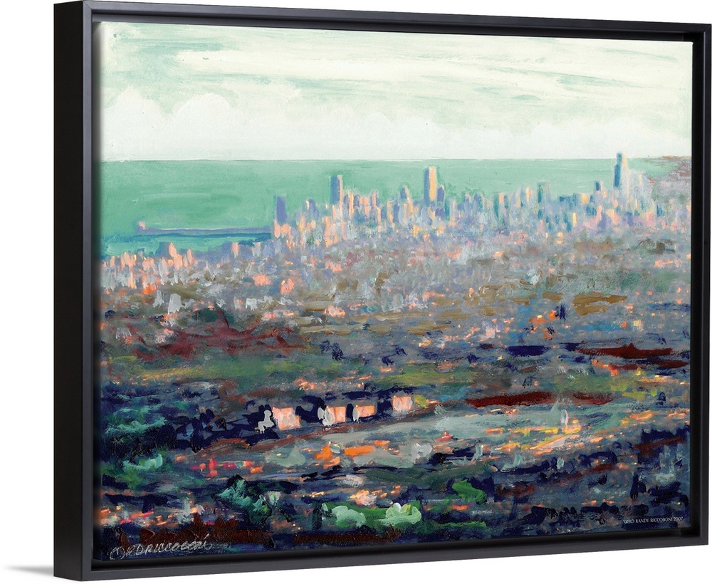 <p>Chicago Blue Dusk By RD Riccoboni, Abstract Painting 2007. Inspired by the view as the sun set to the west and the light reflected off the skyline to the east of the urban metropolis from a flight into the windy city while traveling across country.</p>