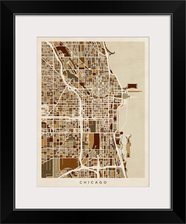 Art Executive Office Decor Maps Maps by City Street Maps Illinois Chicago Michael Tompsett