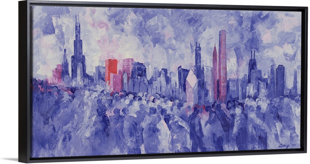 <p>Chicago I, 2090 (oil on canvas) by Bayo Iribhogbe.</p>