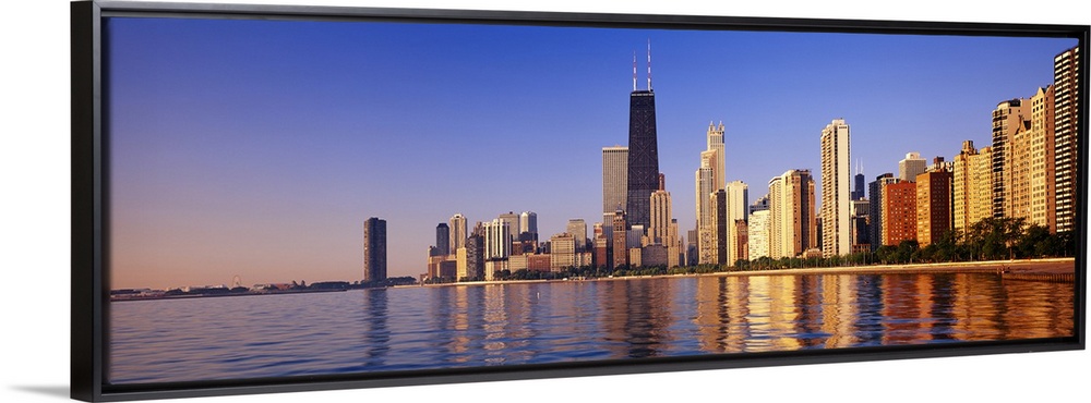 <p>Large panoramic view taken from the water of the Chicago skyline with the sears tower highlighted in the middle.</p>