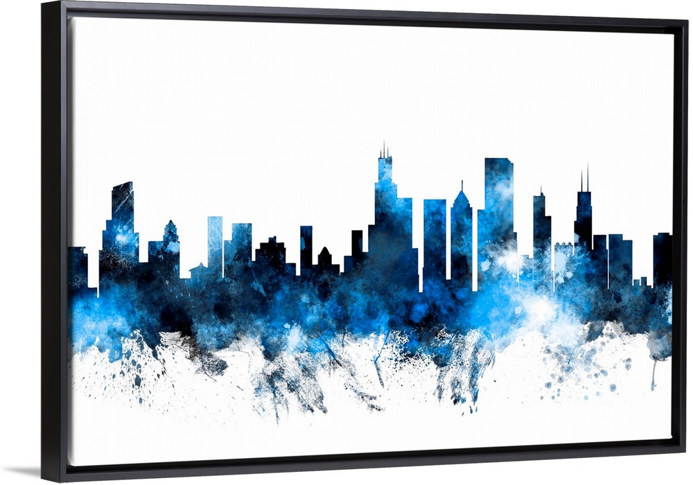 <p>Contemporary piece of artwork of the Chicago skyline made of colorful paint splashes.</p>