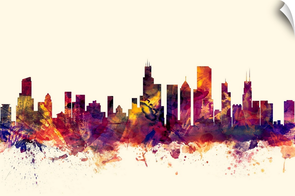 <p>Watercolor artwork of the Chicago skyline against a beige background.</p>