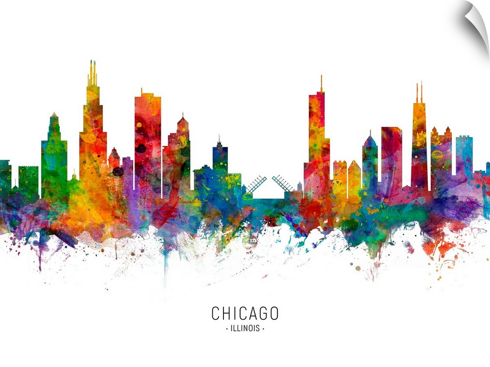 <p>Watercolor art print of the skyline of Chicago, Illinois, United States.</p>