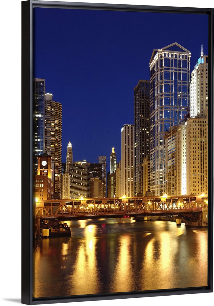 <p>Chicago River and skyline at dusk, Chicago, IL</p>
