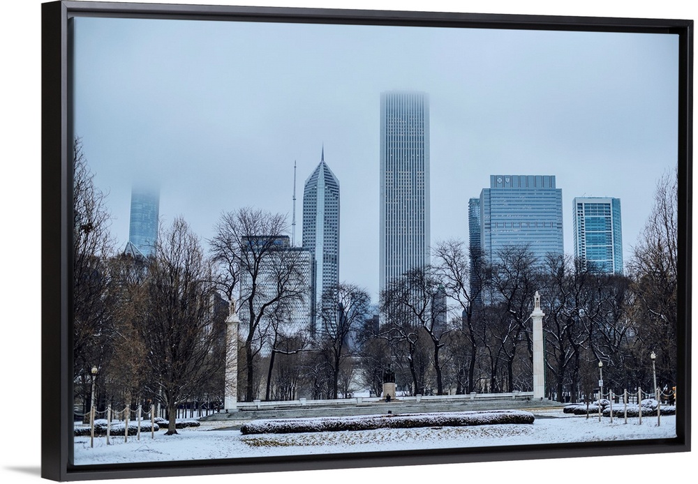 <p>View of Chicago skyline from Grant Park with Abraham Lincoln Statue.</p>