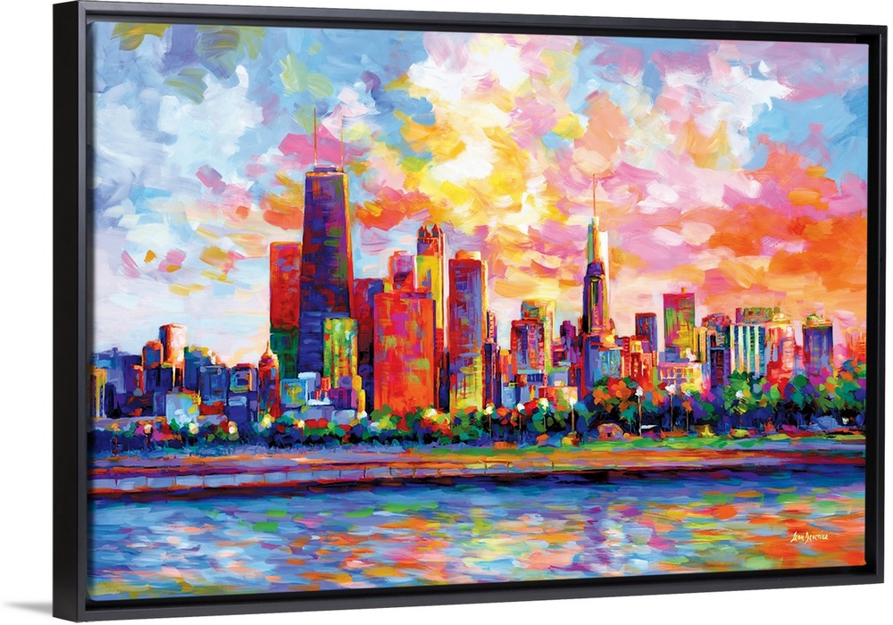 <p>Vibrant and colorful contemporary painting of the Chicago Skyline in the style of modern impressionism.</p>
