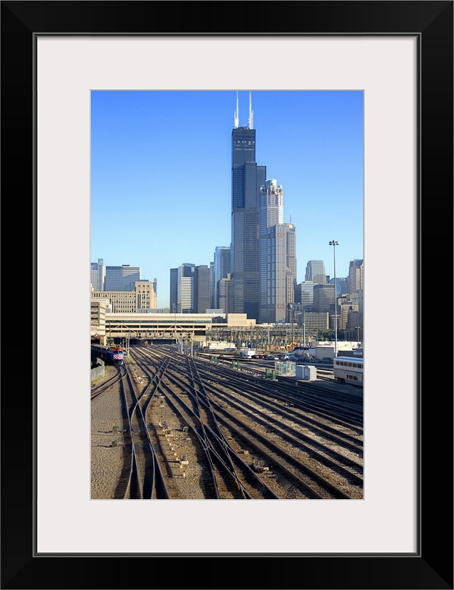 <p>Chicago skyline and railroad tracks</p>