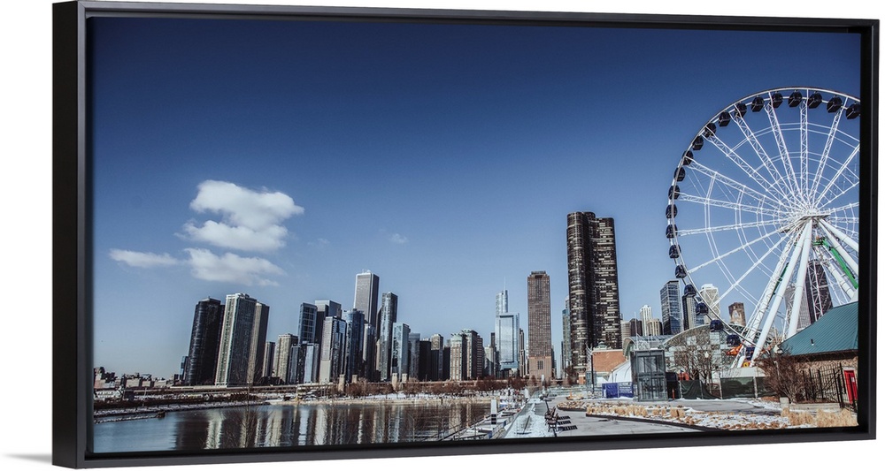 <p>Photo of Chicago skyline with Centennial Wheel from Navy Pier.</p>