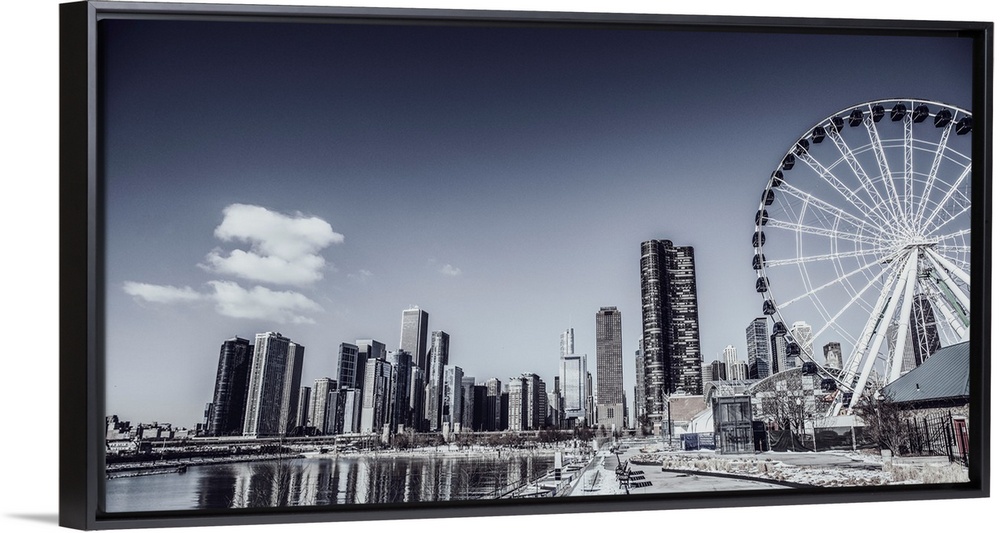 <p>Photo of Chicago skyline with Centennial Wheel from Navy Pier.</p>