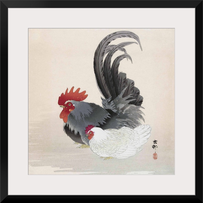 <p>Chicken and Rooster, by Japanese artist Ohara Koson, 1877 - 1945. Ohara Koson was part of the shin-hanga, or new prints movement.</p>