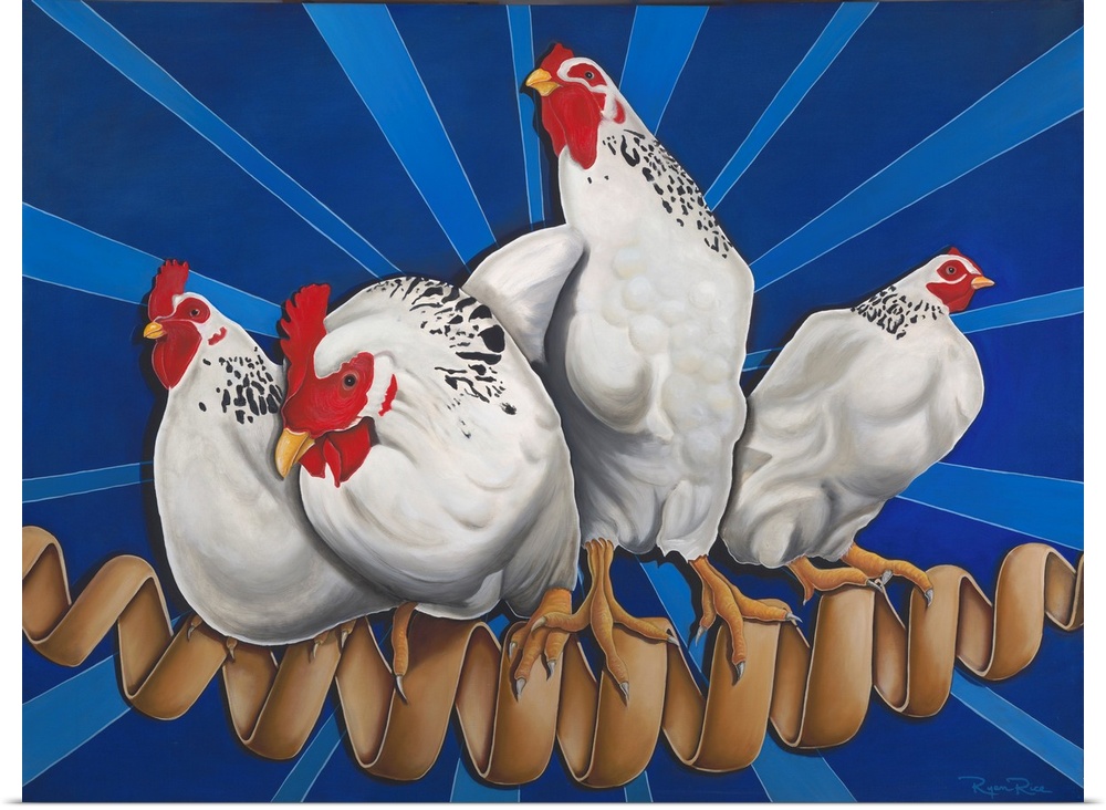 Art Blue Wall Art Contemporary Art Wildlife Food and Drink Food Painting Ryan Rice Surrealism Wildlife Bird Chicken