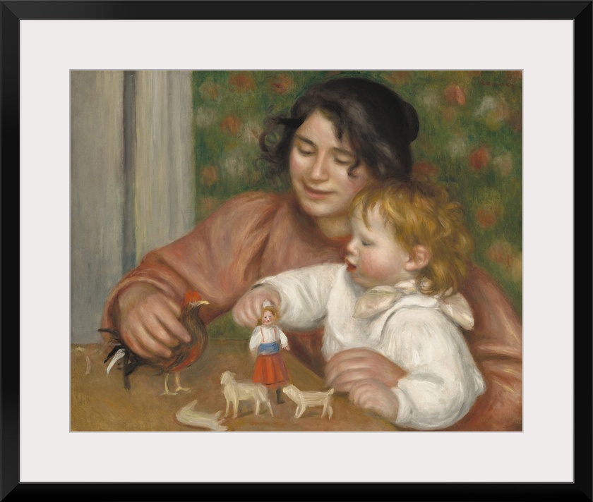 <p>Child with Toys - Gabrielle and the Artist's Son, Jean, by Auguste Renoir, 1895-96, French impressionist painting, oil on canvas. This painting shows Renoir's 1890s adoption of a deeper, richer, saturated palette of Renaissance masters</p>