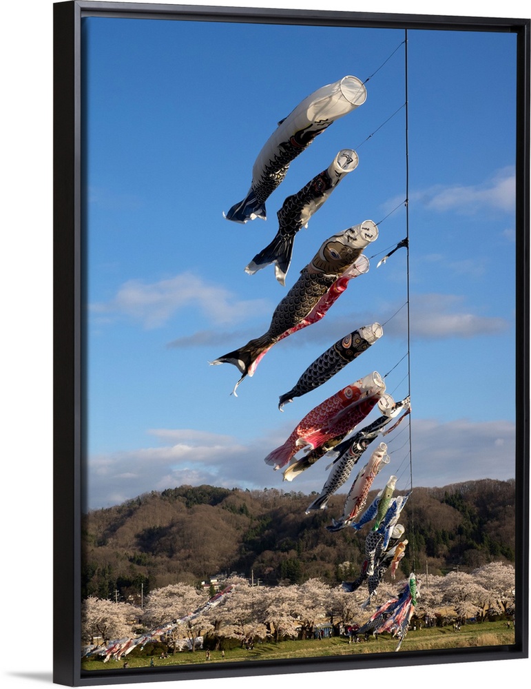 <p>Children's' Day flying fish over river, Kitakami River, Kitakami, Iwate Prefecture, Japan</p>
