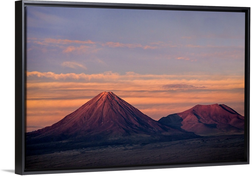 <p>Chile, Atacama Desert, Salar de Atacama, Antofagasta Region, El Loa Province. The strato-volcano Licanabur at sunset.</p>