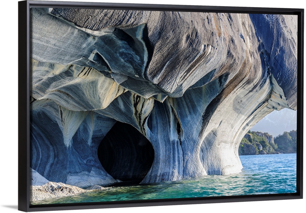 <p>Chile, Aysen, Puerto Rio Tranquilo, Marble Chapel Natural Sanctuary. Limestone (marble) formations, that has been carved and polished by the lakes wave action.</p>