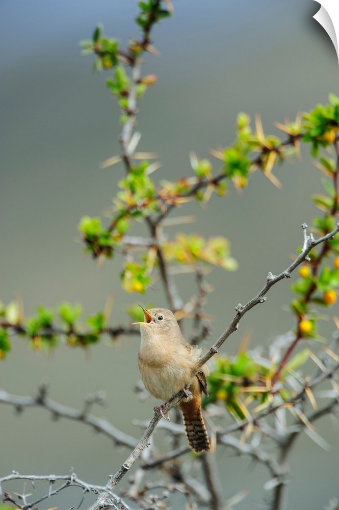 <p>Chile, Aysen, Valle Chacabuco. House Wren (Troglodytes aedon) in Patagonia Park.</p>