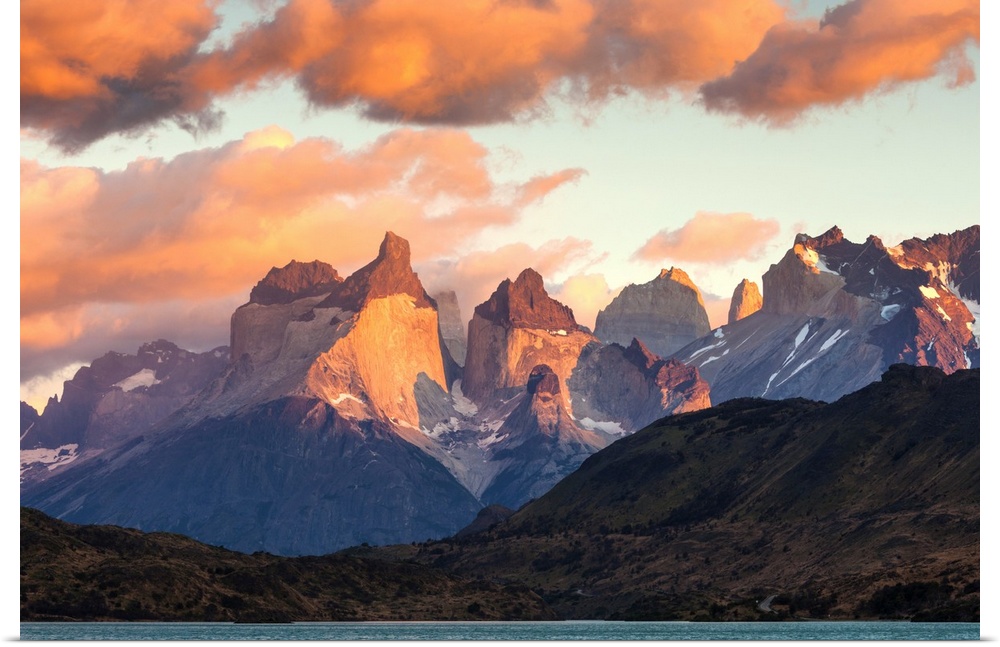<p>Chile, Magallanes Region, Torres del Paine National Park, Lago Pehoe, dawn landscape</p>