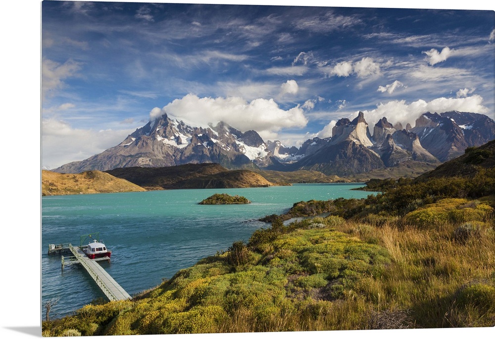 <p>Chile, Magallanes Region, Torres del Paine National Park, Lago Pehoe, tour boat</p>