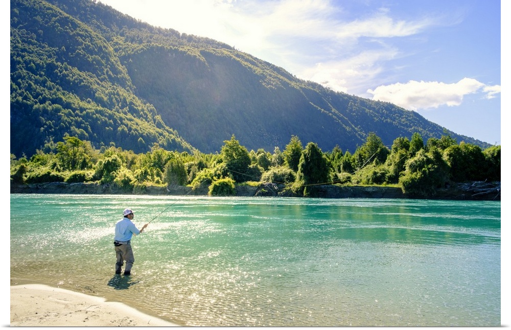 <p>South America, Chile, Patagonia, Decima Region, Puelo, Puelo River, fishing on the Puelo River, MR.</p>