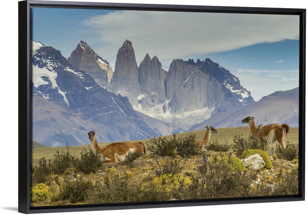 <p>South America, Chile, Patagonia, Torres del Paine. Guanacos in field.</p>