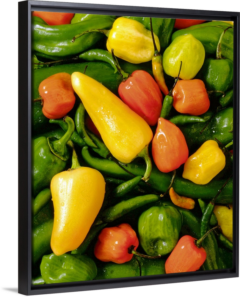 <p>This vertical photograph of food is a pile of hot peppers.</p>