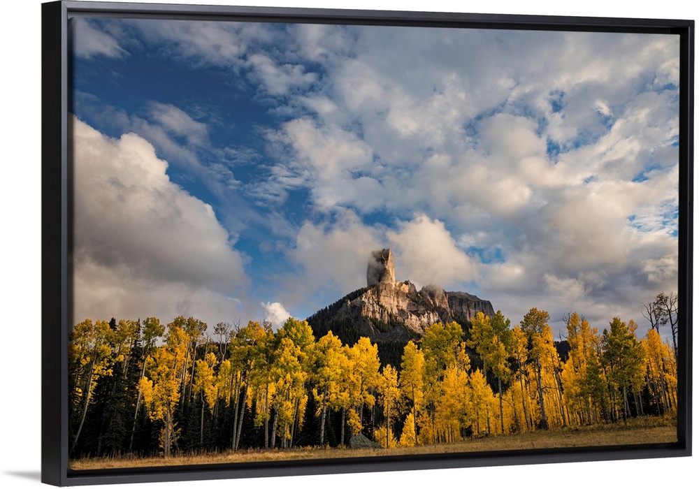 <p>Chimney Rock at sunset, from Owl Creek Pass, Cimarron range in autumn, San Juan Mountains, eastern Ouray County, Colorado</p>