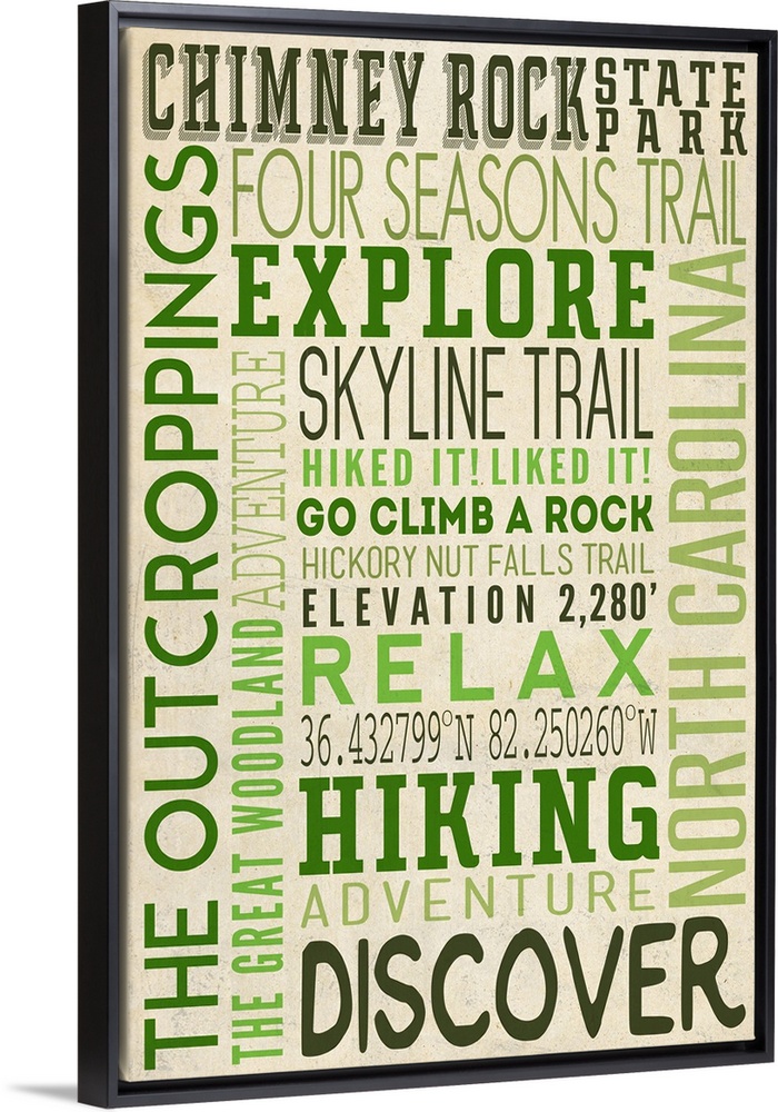 <p>Chimney Rock State Park, North Carolina, Typography</p>