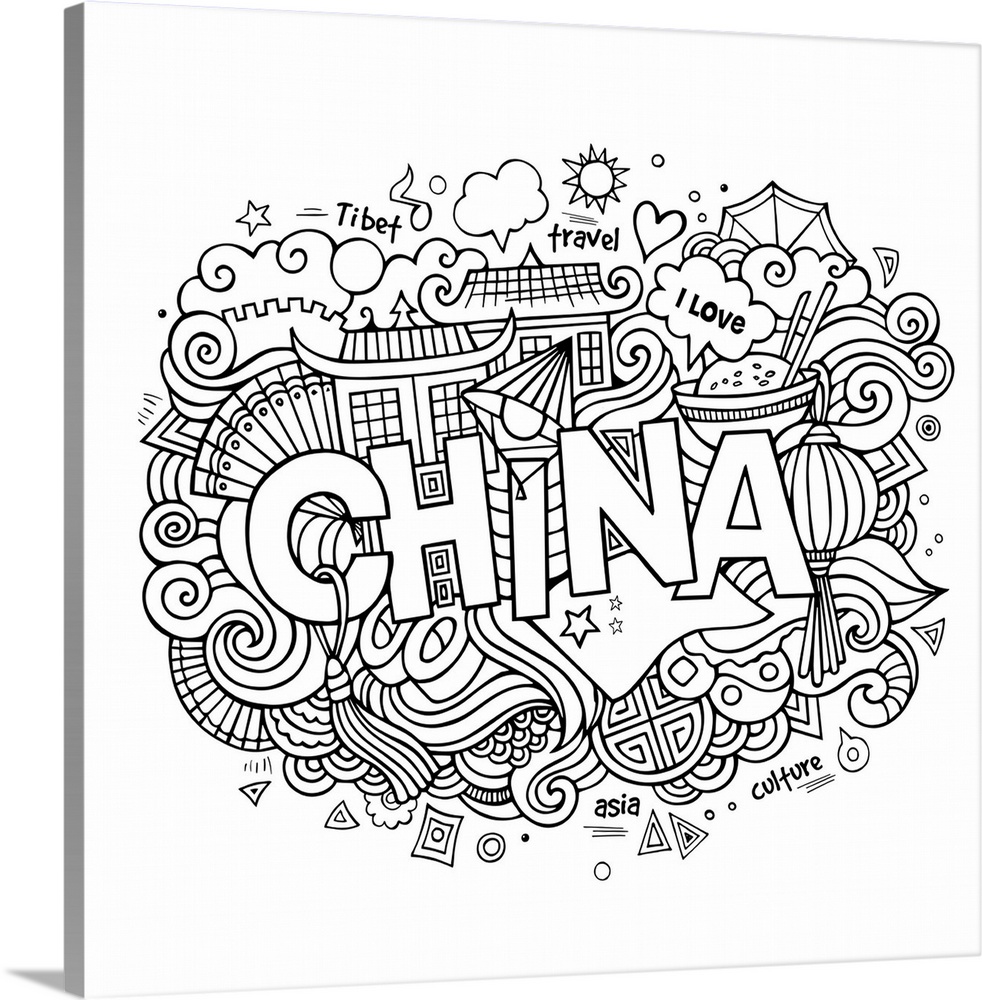 <p>An assortment of objects celebrating China, such as fans and lanterns. Perfect for coloring canvas.</p>