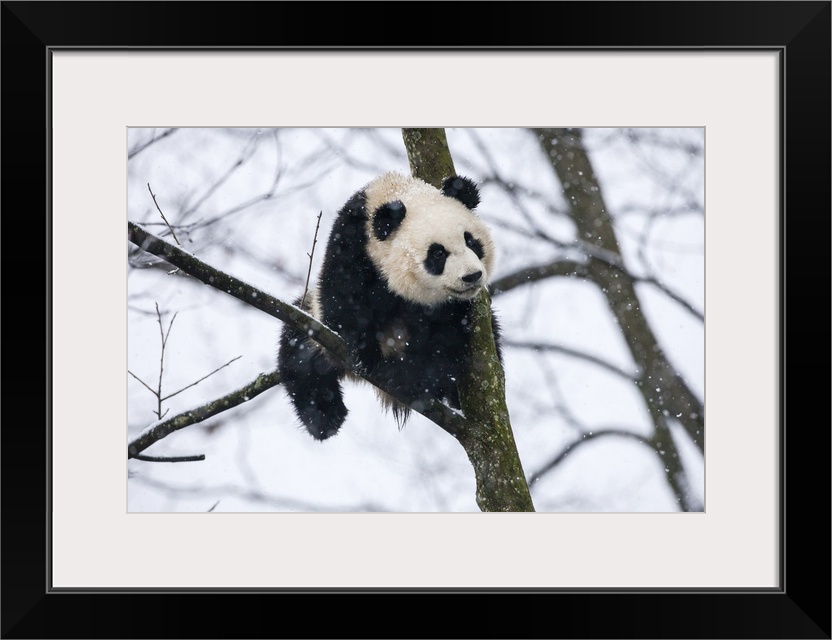 <p>China, Chengdu Panda Base. Baby giant panda in tree.</p>